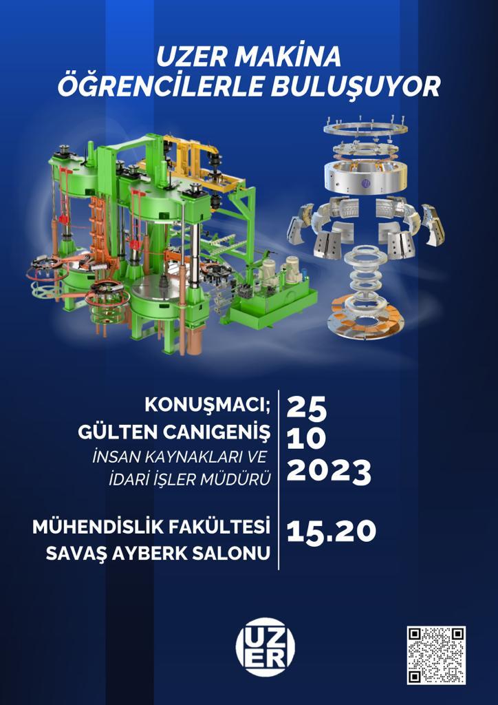 Uzer Makina Savunma sanayi yatırımları ile bu alanda da ilerleme yolundadır. Tüm öğrencilerimiz iş ve staj imkanları için Kariyer Günleri Uzer Makine seminerine davetlidir. Yer: Mühendislik Fakültesi Savaş Ayberk Salonu, Saat: 15:20